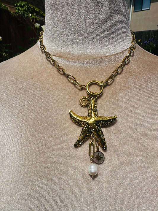 Mermaid Fantasy: Waterproof Statement Necklace with Pearls and Charms