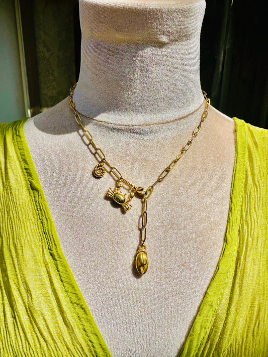 Shellfish Adjustable Lariat | Ocean Crab Necklace, Lobster Claw, Mollusk, Crustacean, Mermaid Inspired Jewelry
