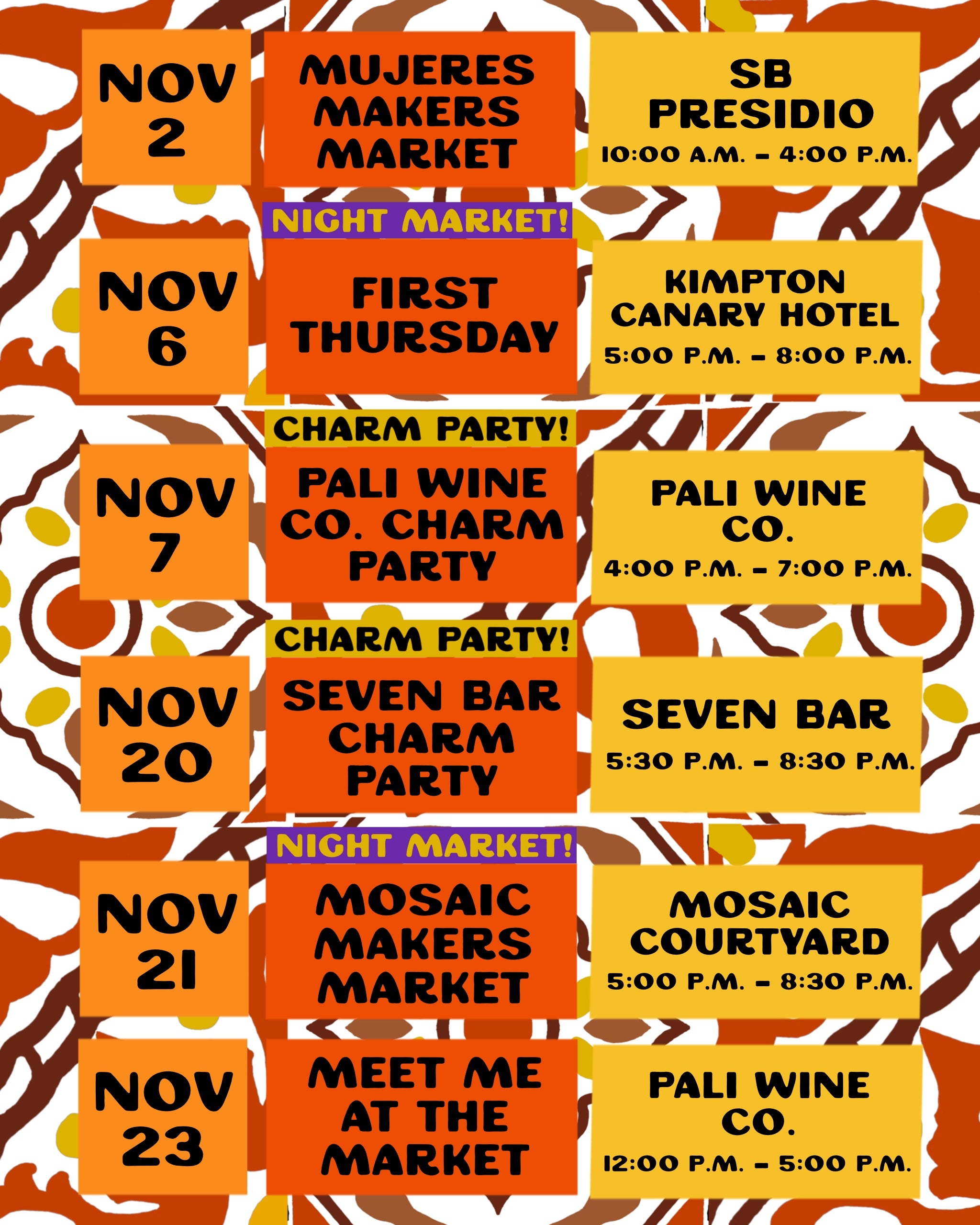 Nov. 21: Mosaic Makers Night Market, Mosaic Courtyard, 5:00 p.m. - 8:30 p.m.