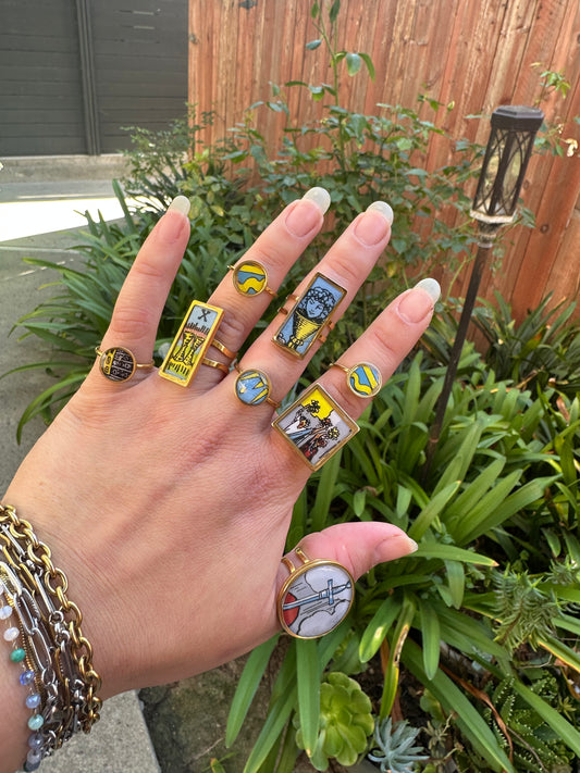 Roger Buster and CreaTiffity Studios bring you a collection that gives tarot cards new lives as the centerpieces of unique, eye-catching jewelry. Whether you are looking for the vibes of a specific card, or just looking for a statement piece, we don’t need to ask the cards: our jewelry will have you looking fly, guaranteed!